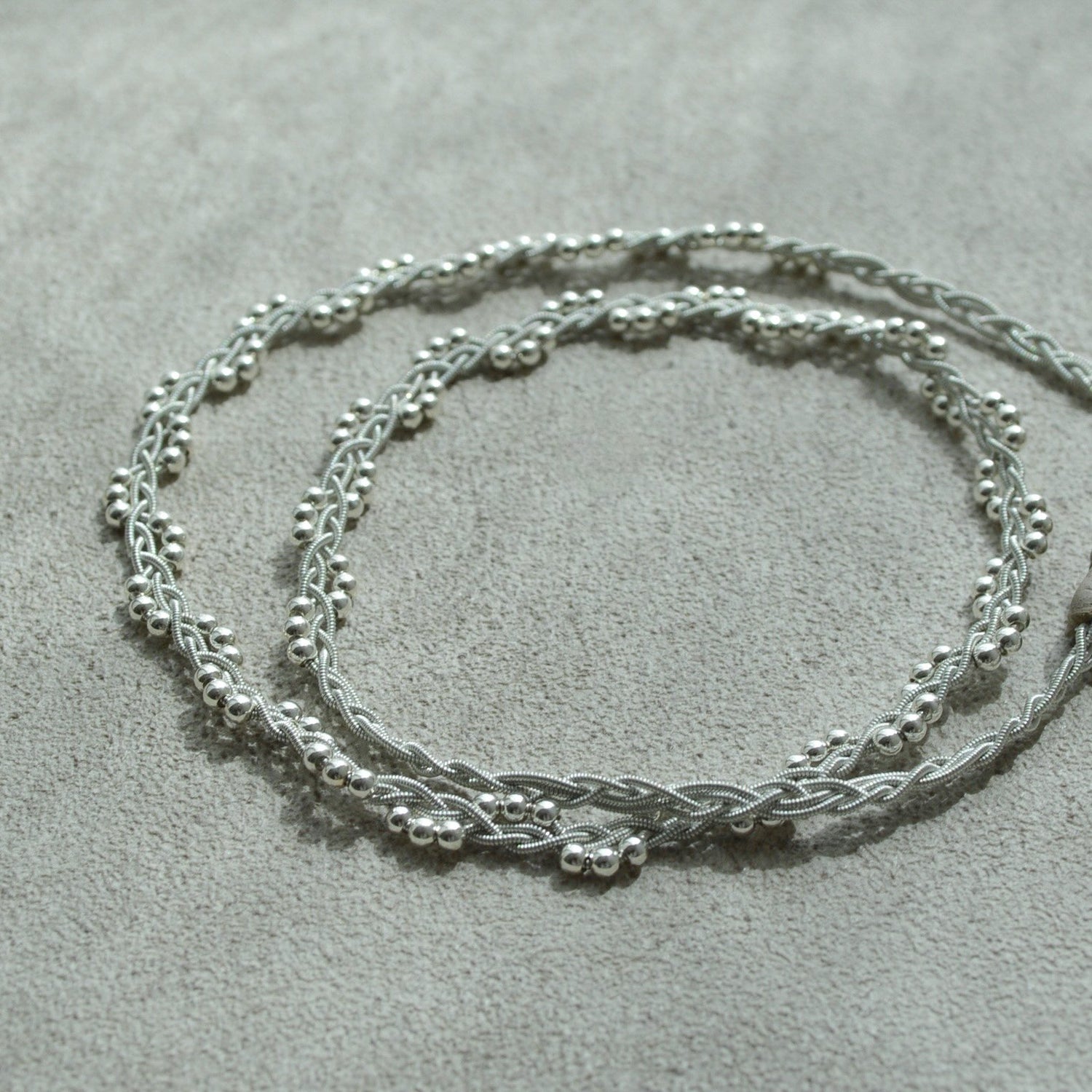【即納】手元に上品なエッセンス、シルバービーズの2連ブレス