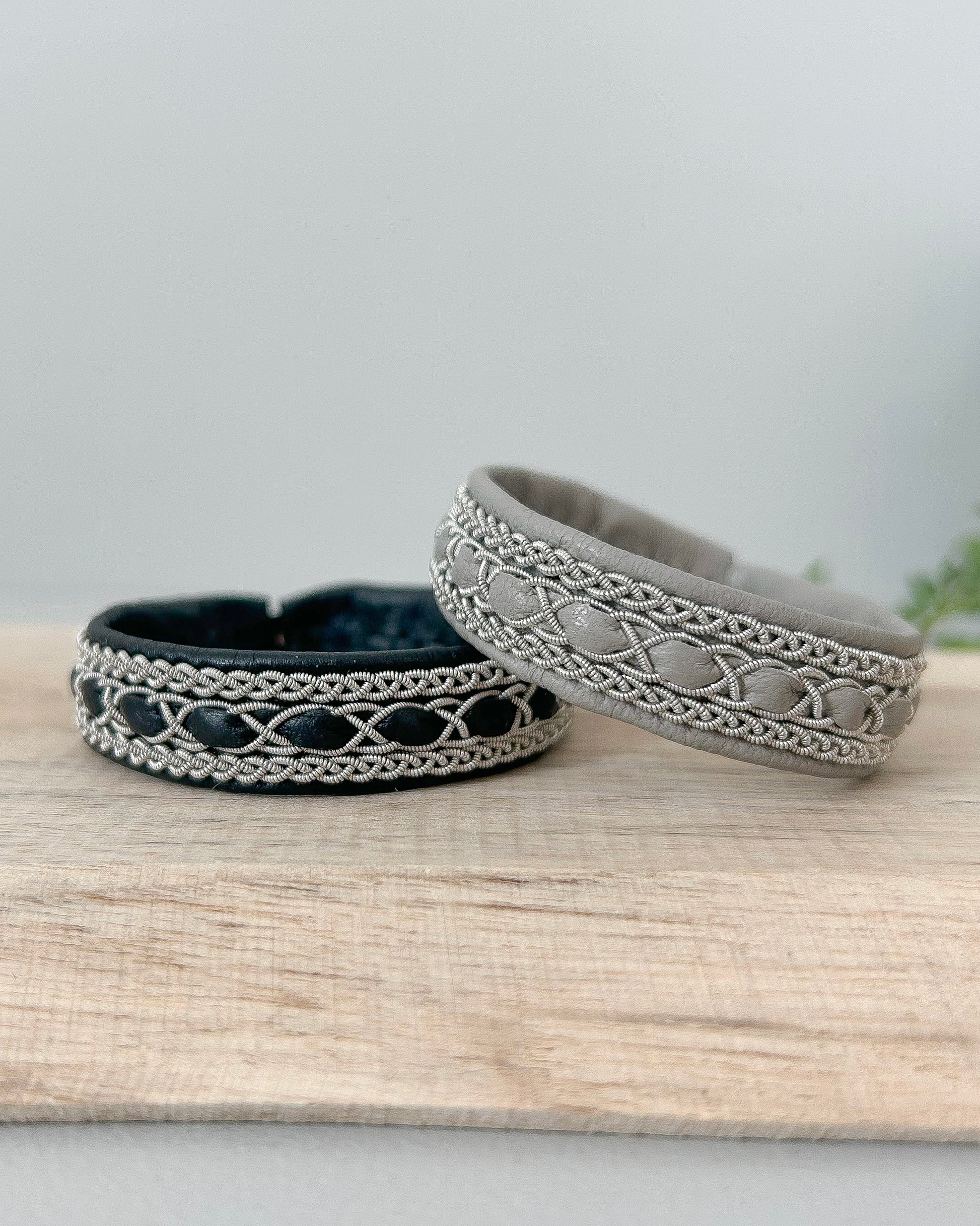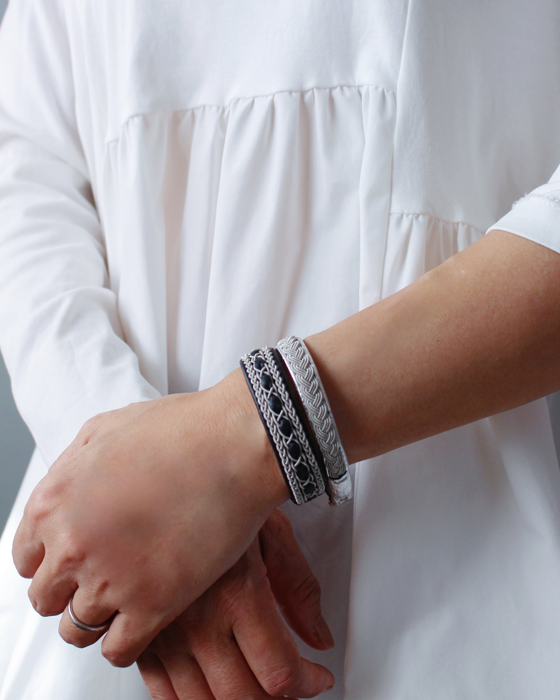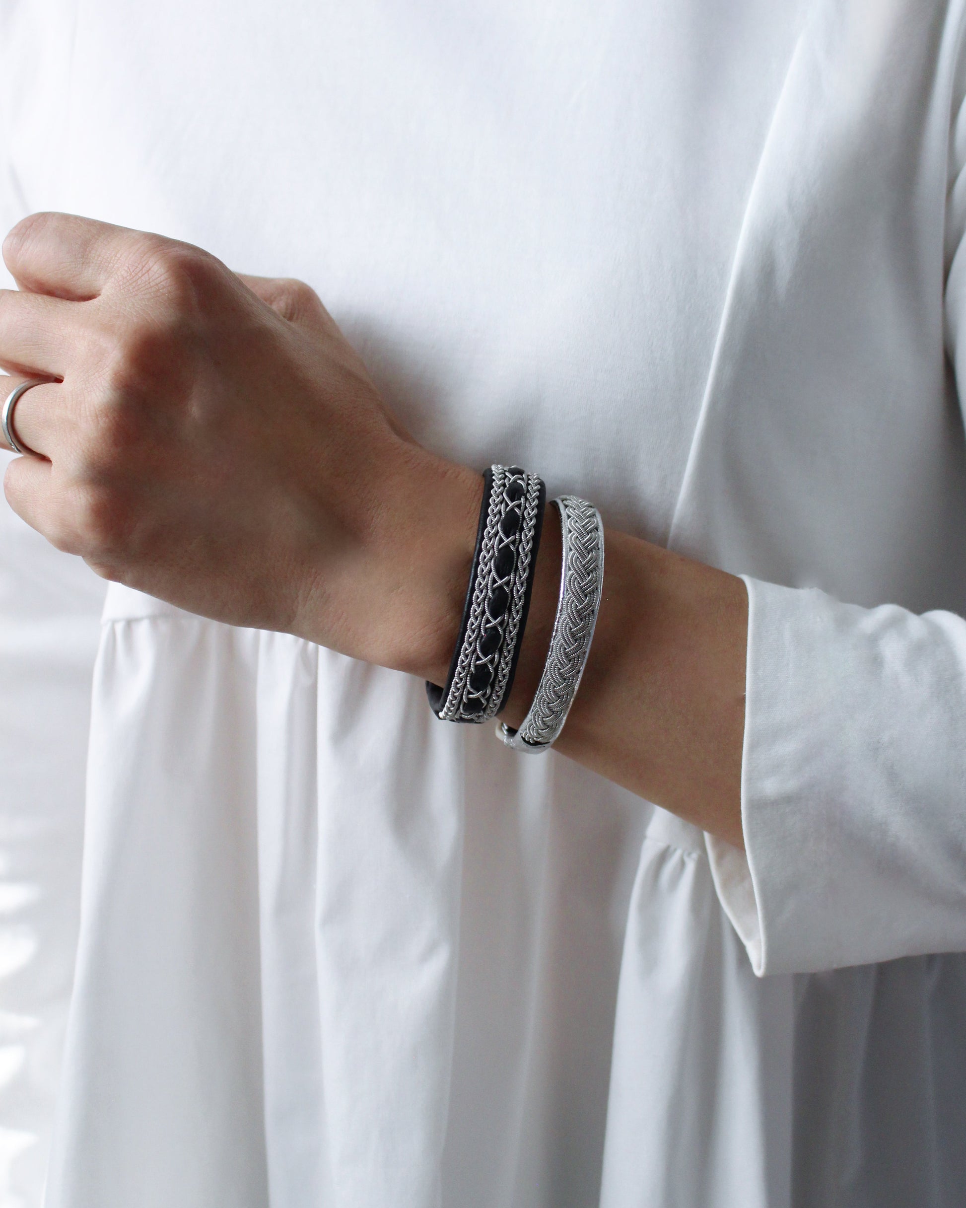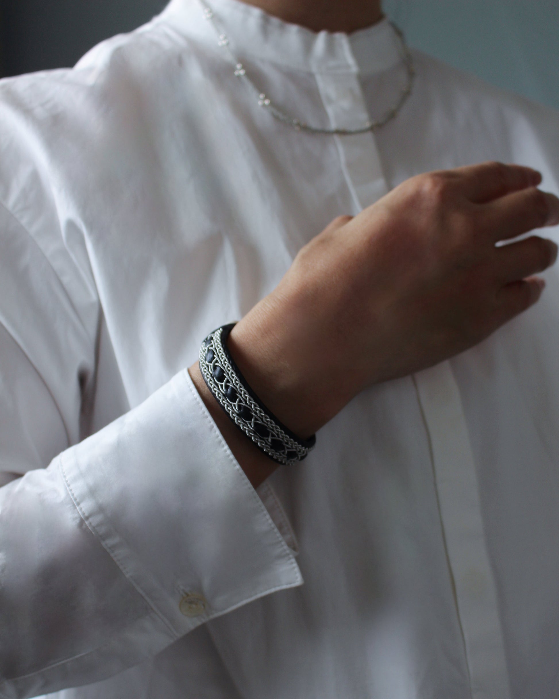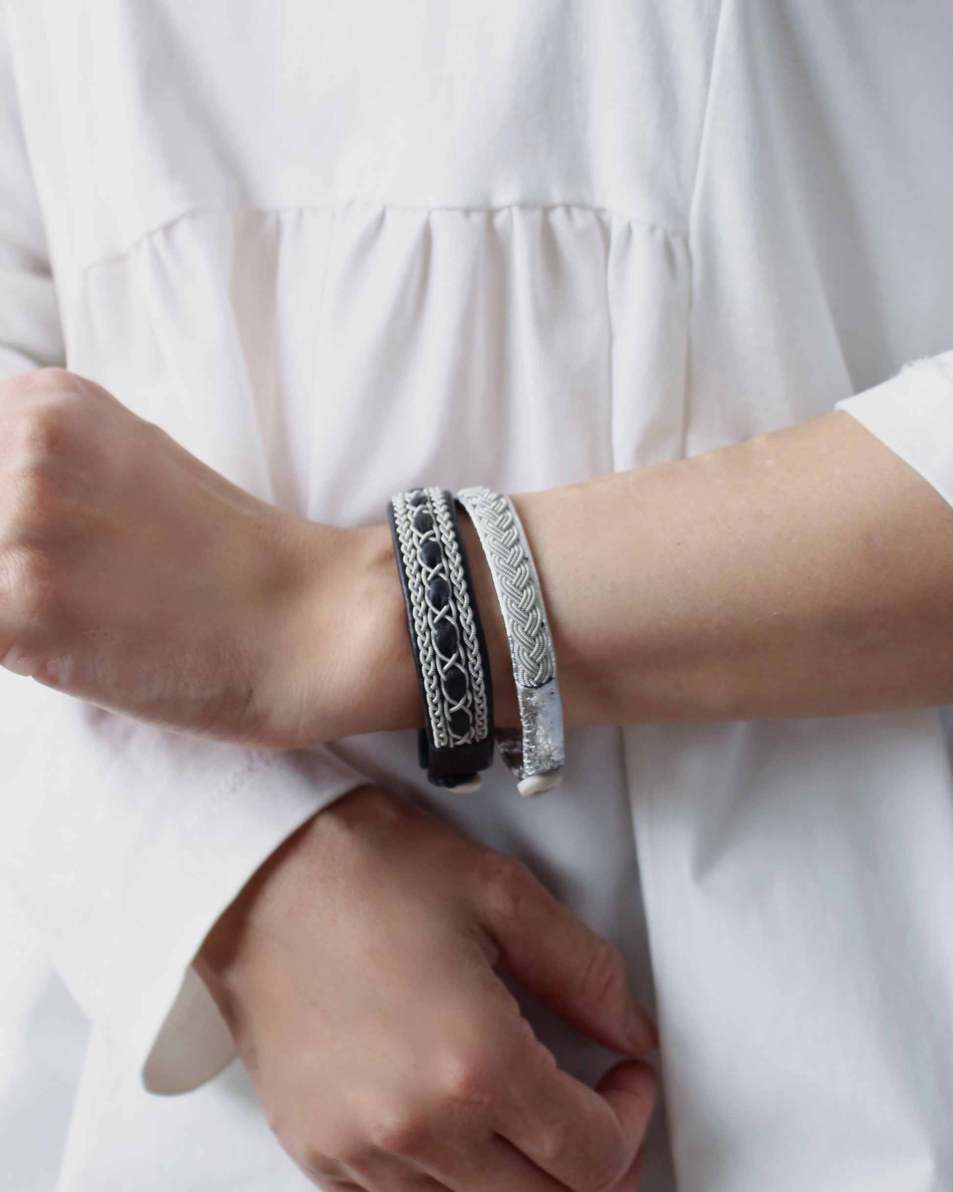 素材:トナカイ革、トナカイ角、ピューターワイヤー(錫糸)