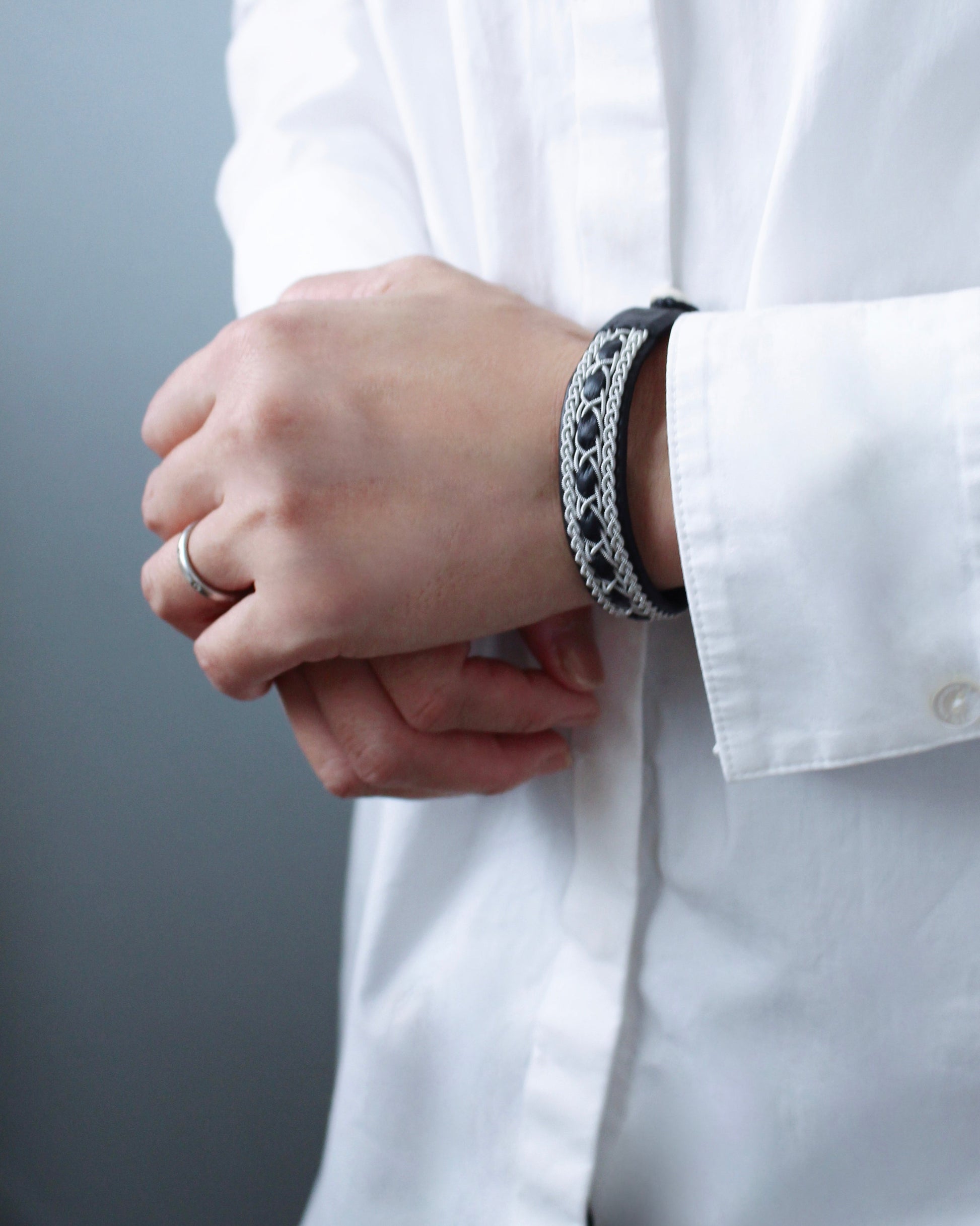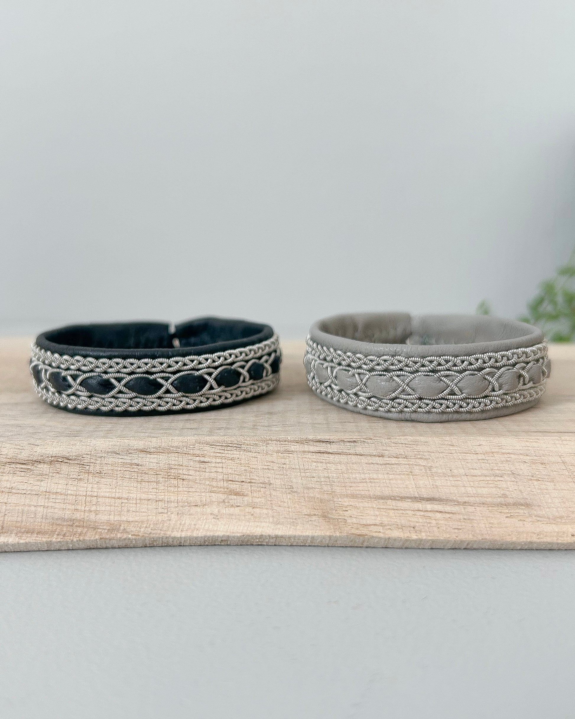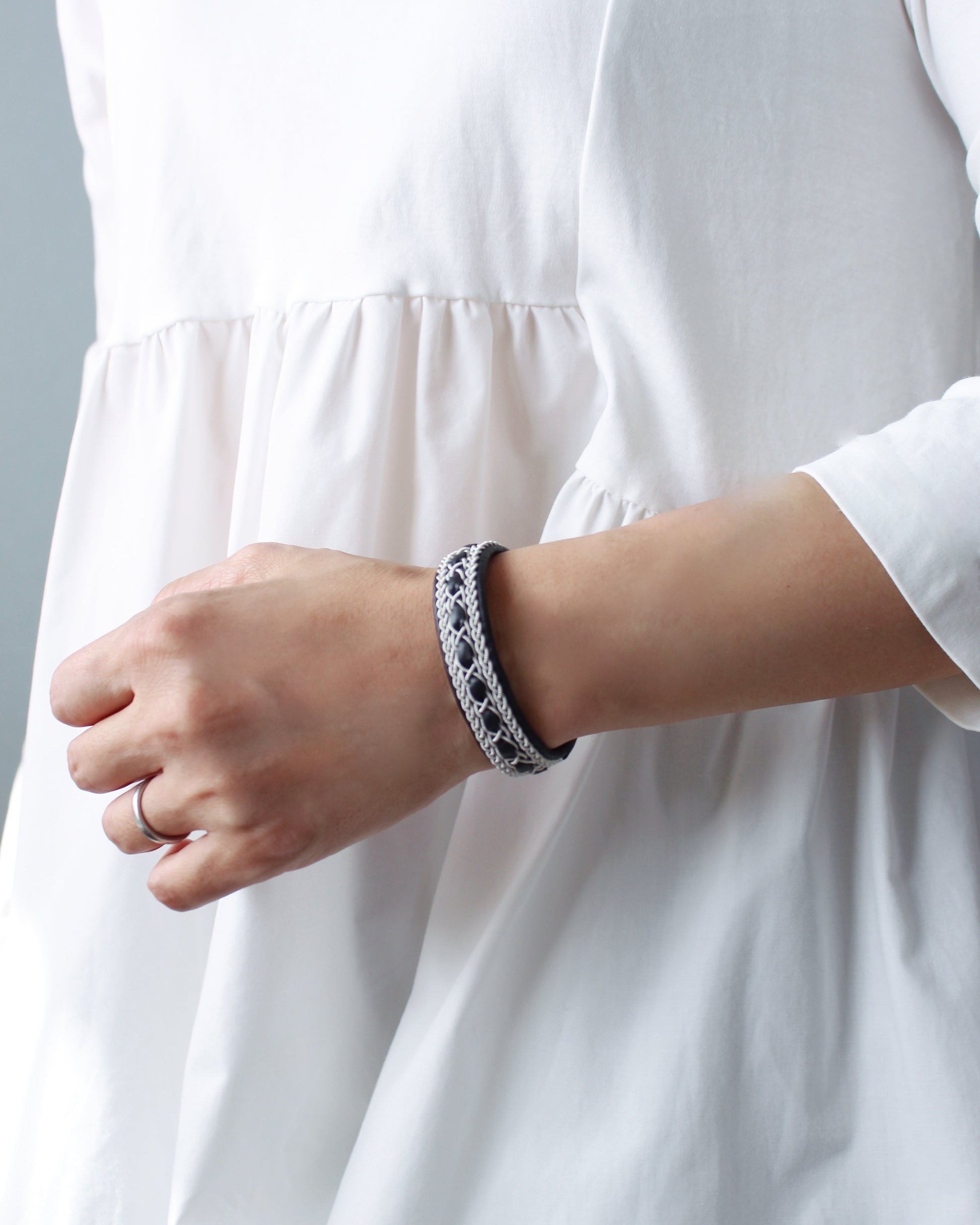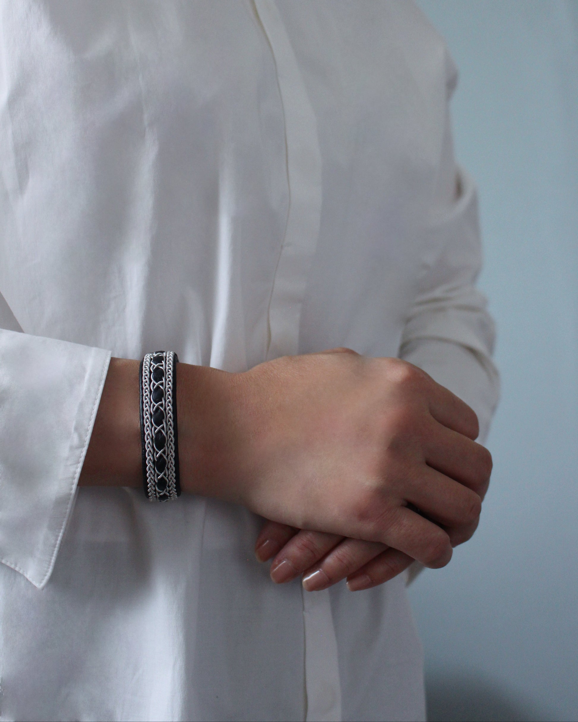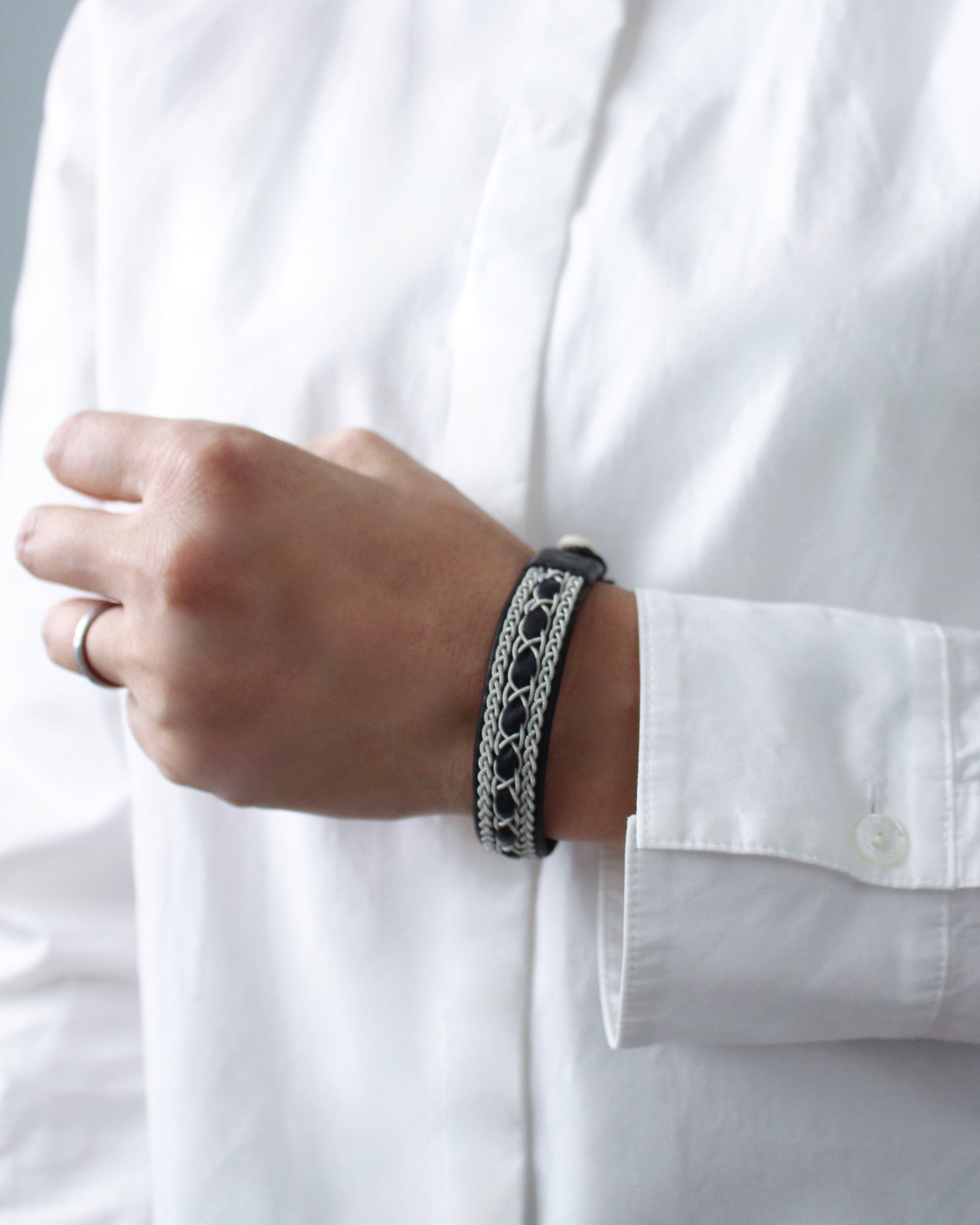 素材:トナカイ革、トナカイ角、ピューターワイヤー(錫糸)