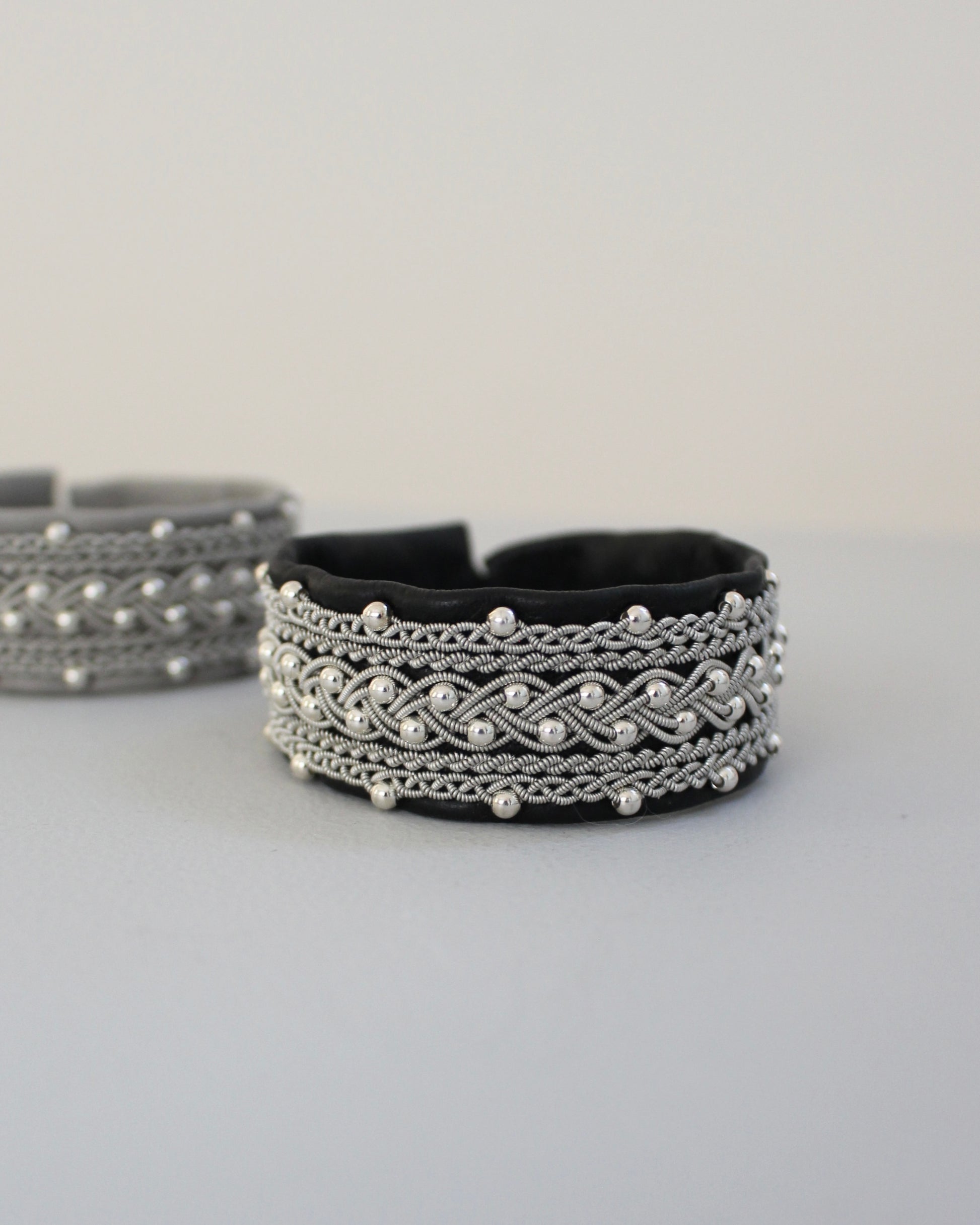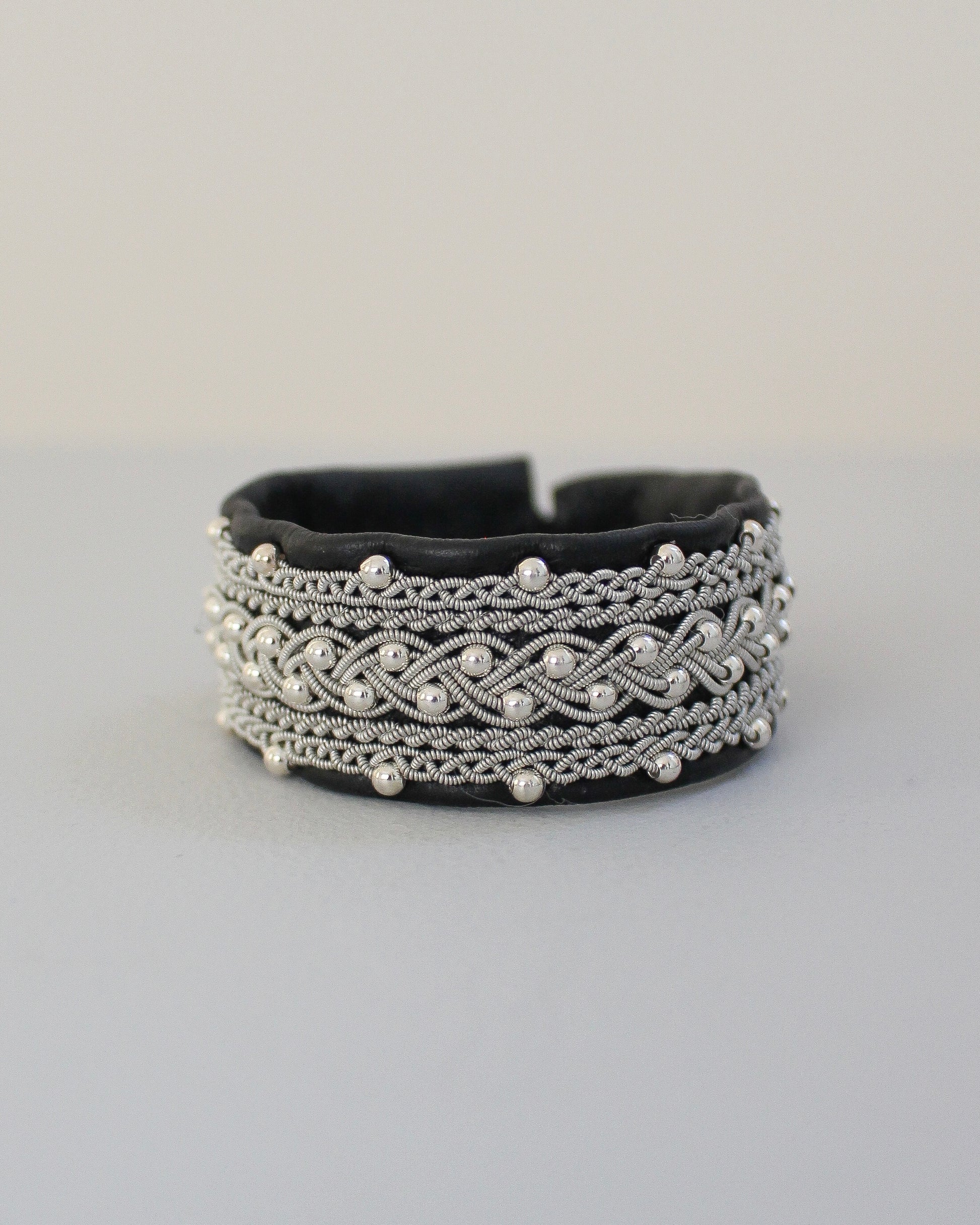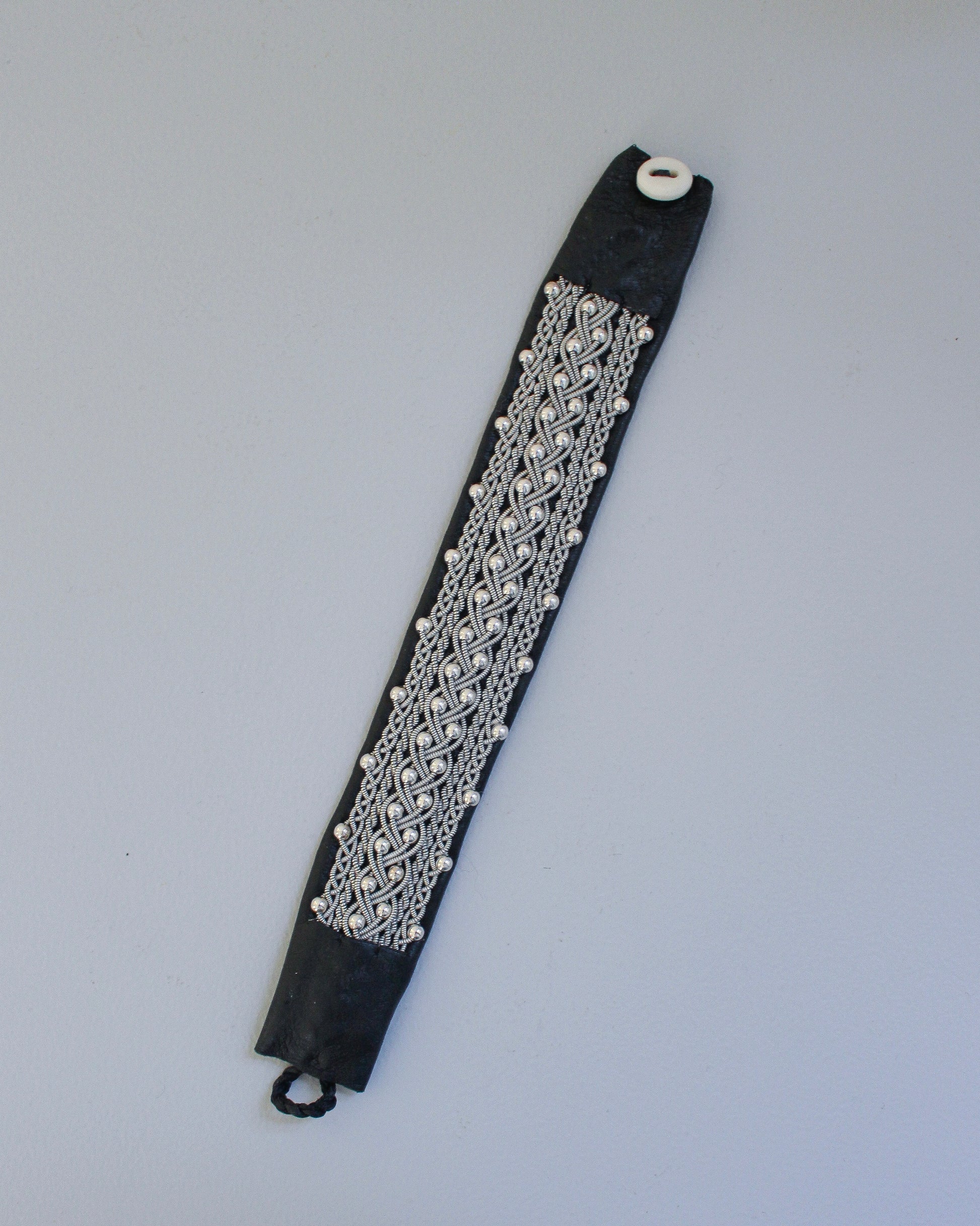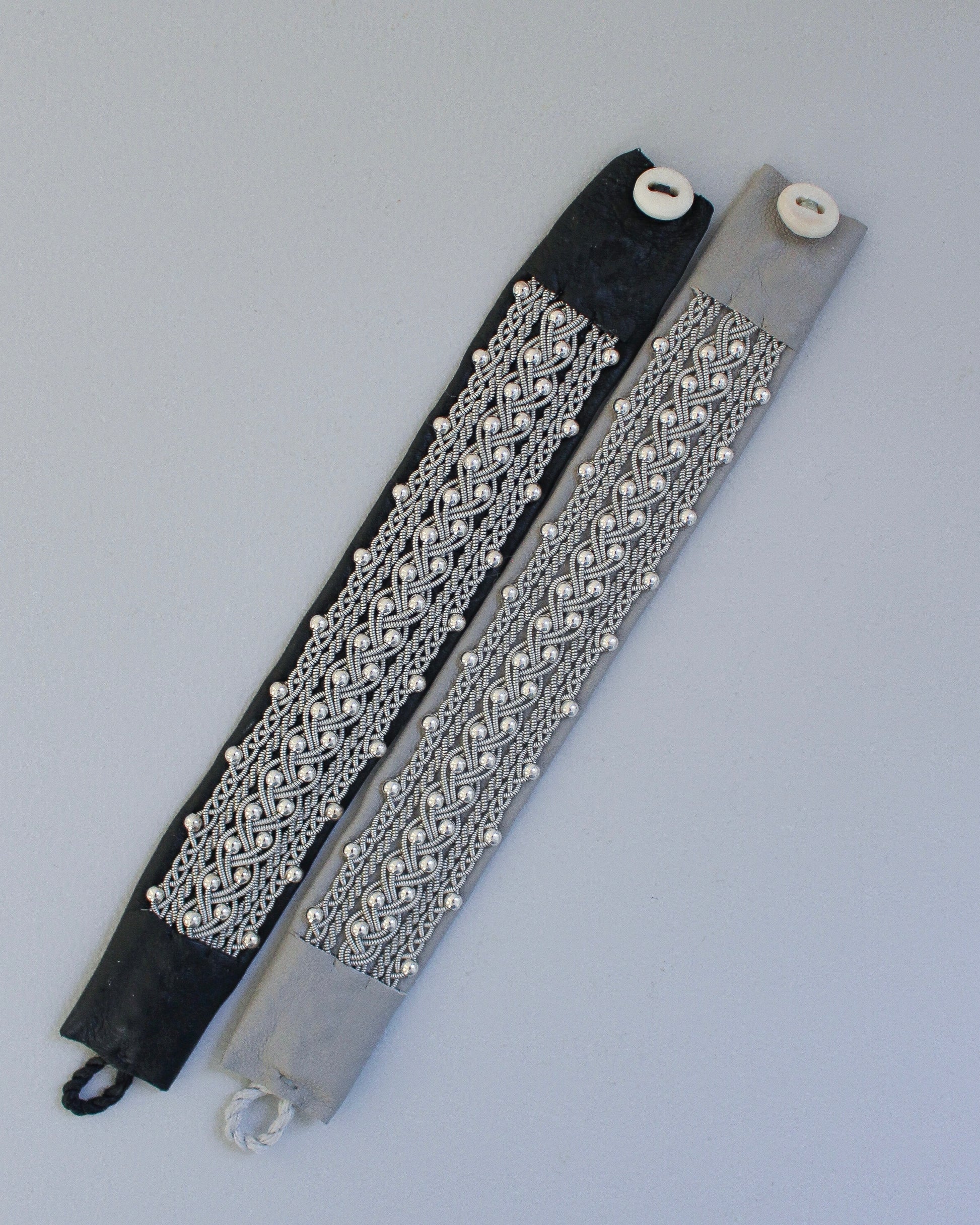 素材:トナカイ革、トナカイ角、ピューターワイヤー(錫糸)