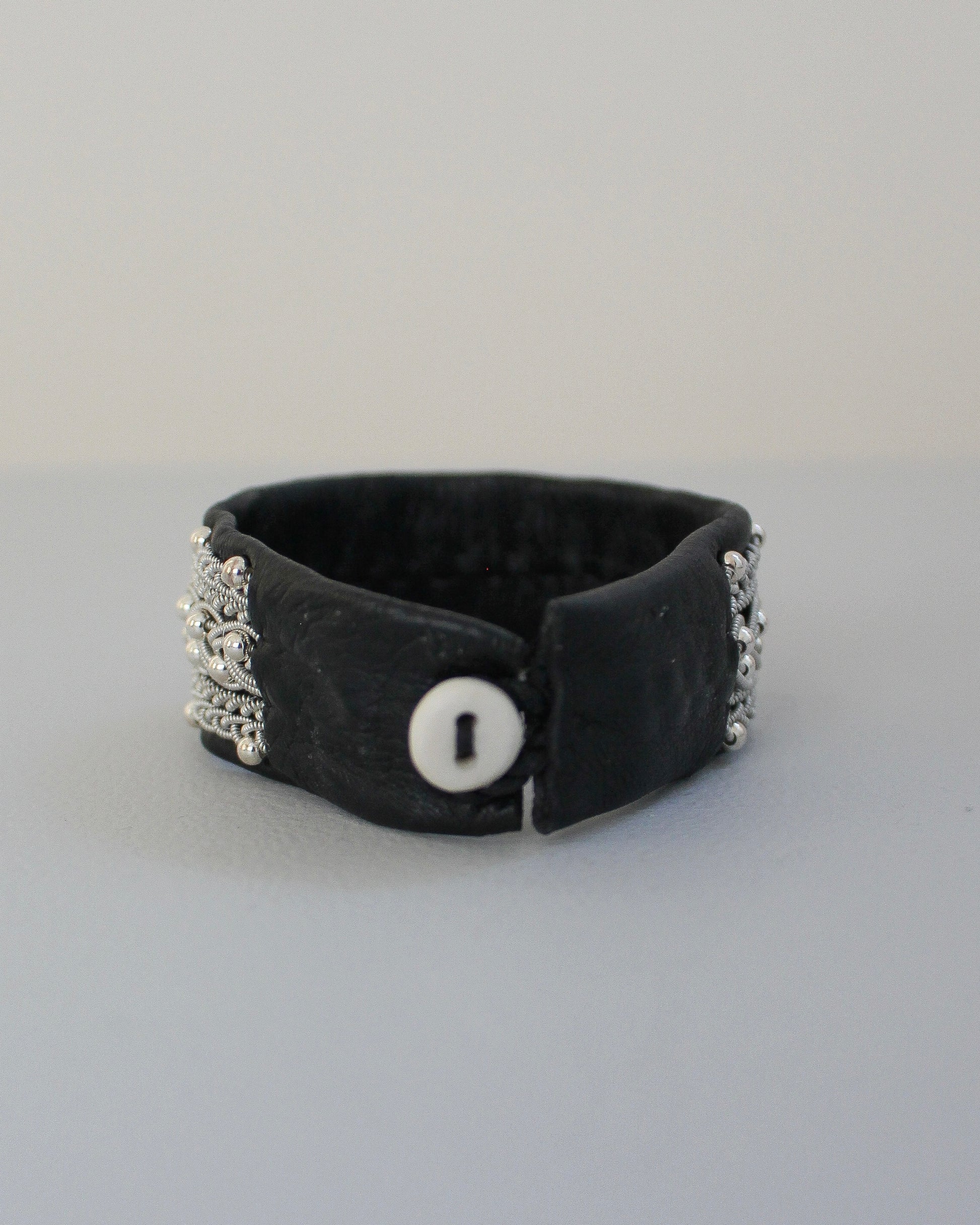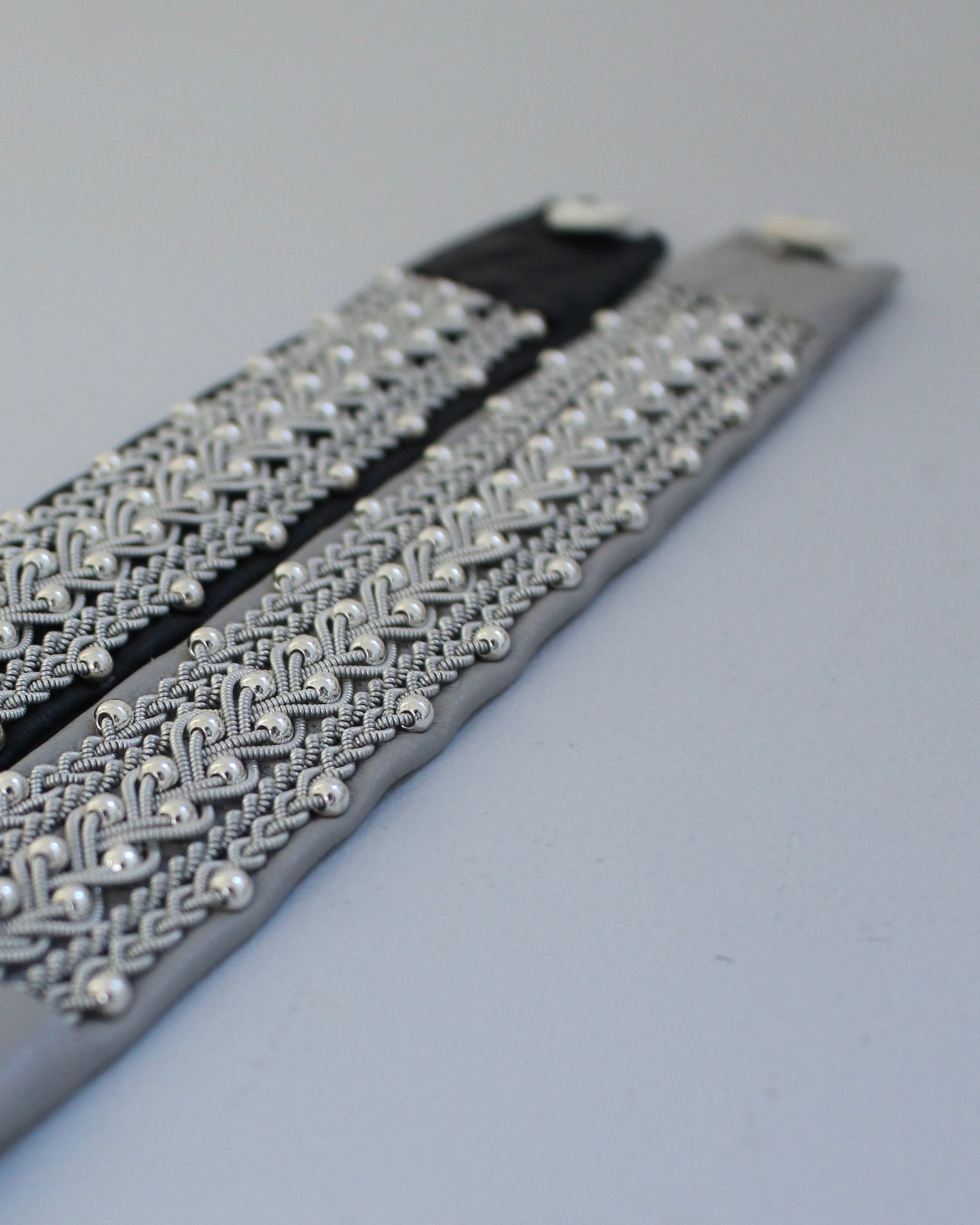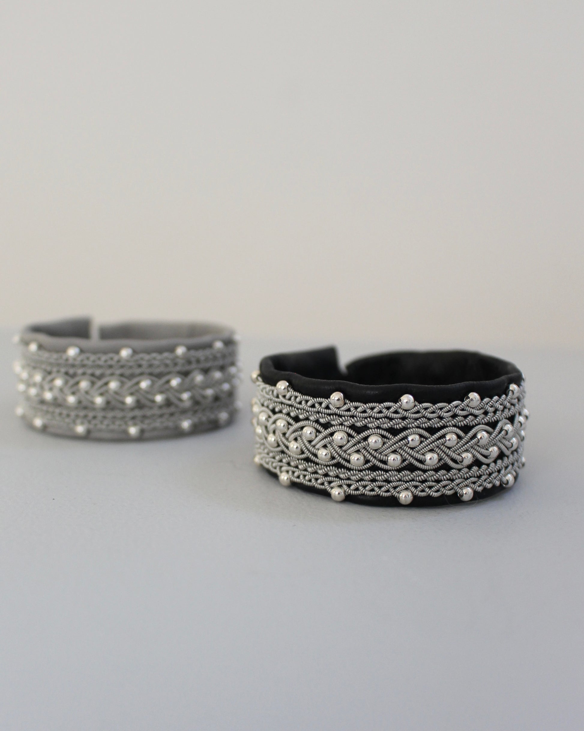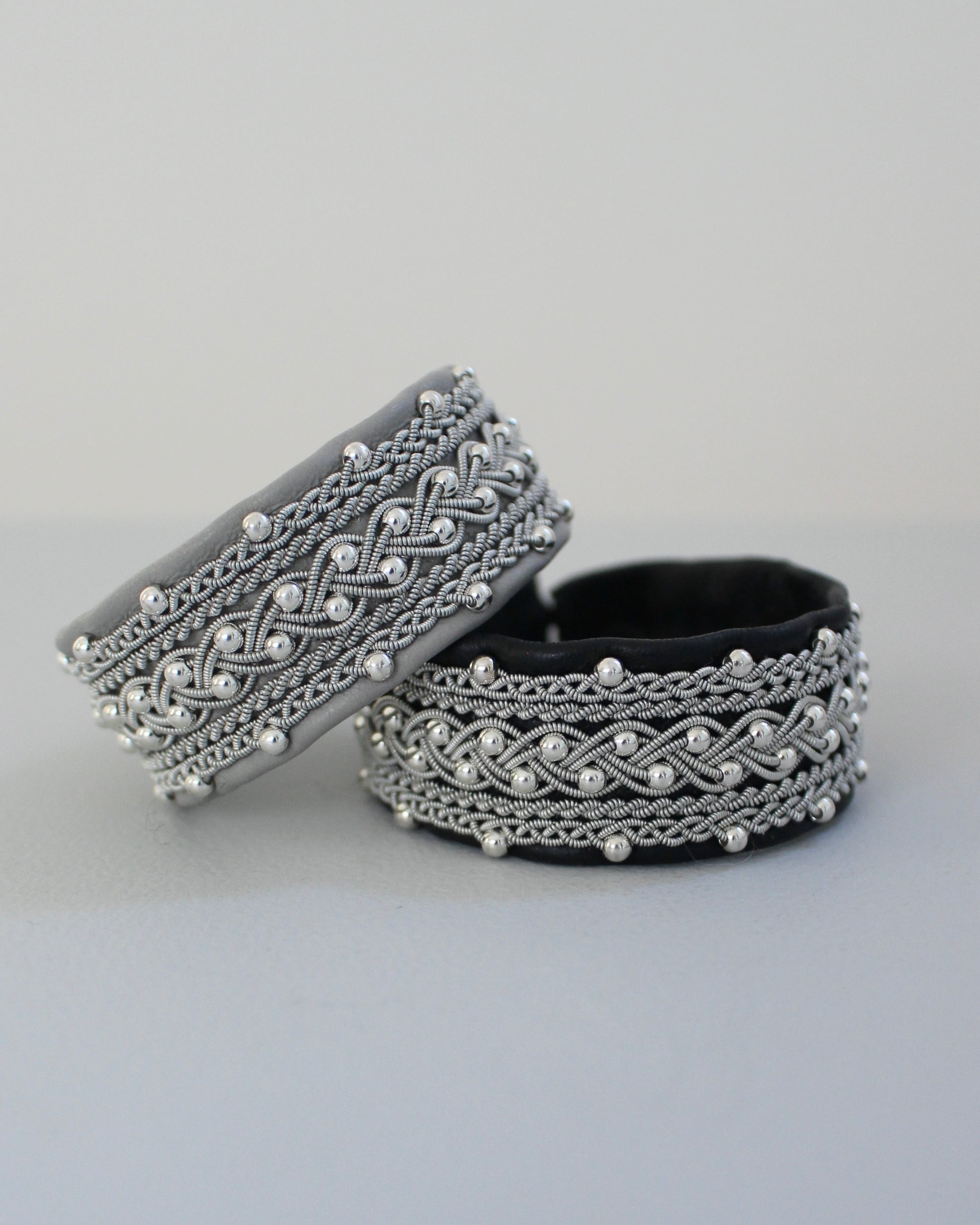 素材:トナカイ革、トナカイ角、ピューターワイヤー(錫糸)