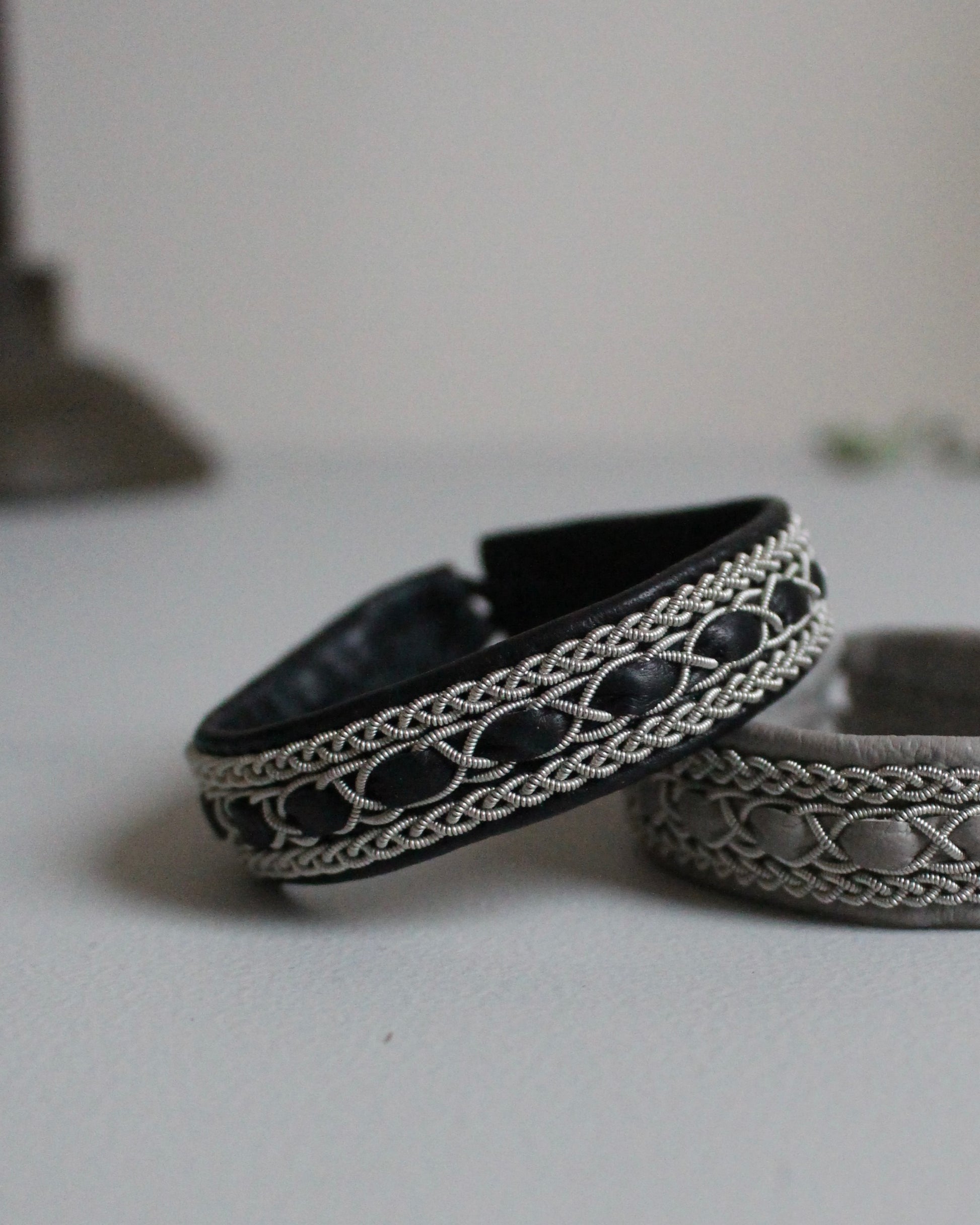 模様を重ねたサーミブレスレットです。