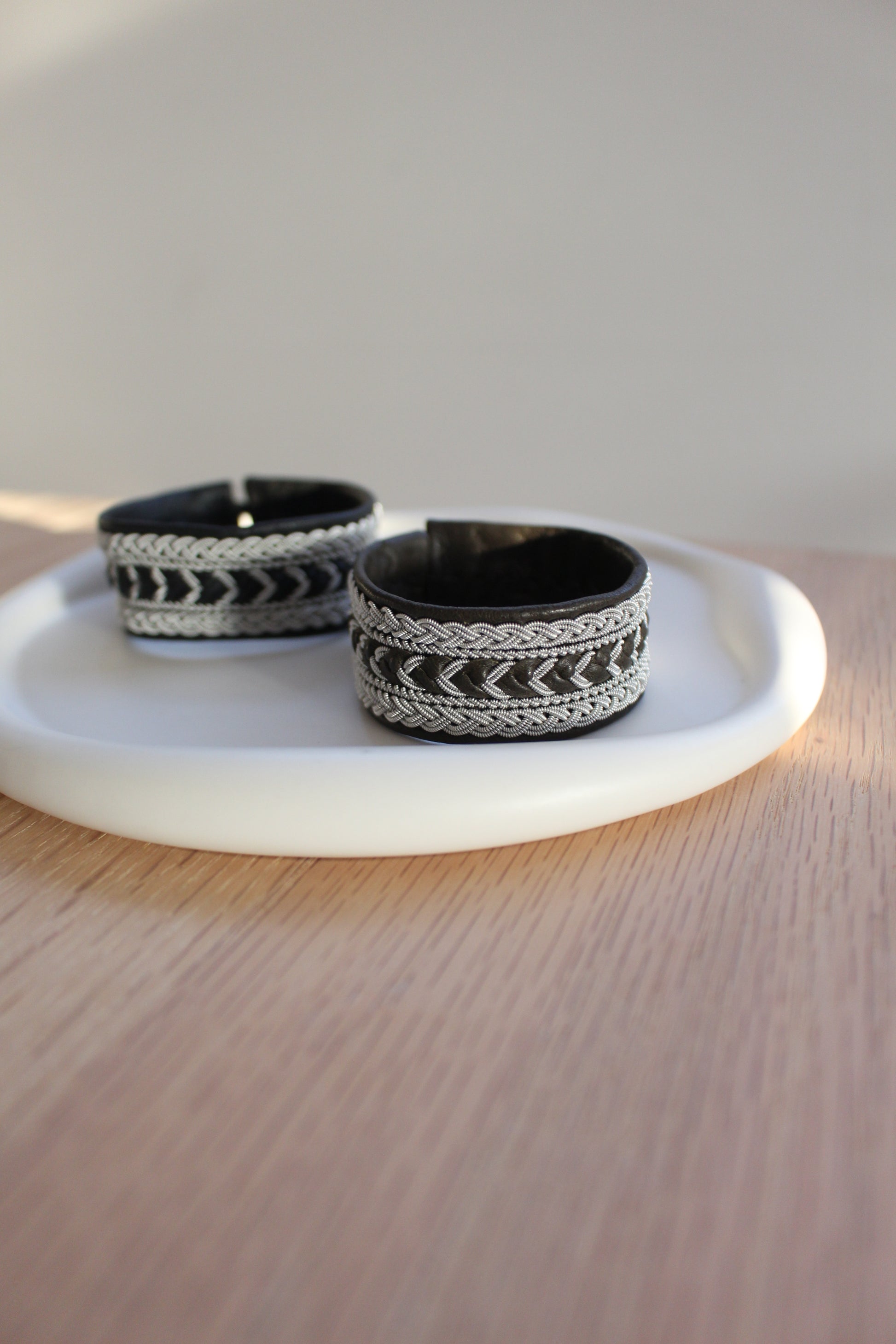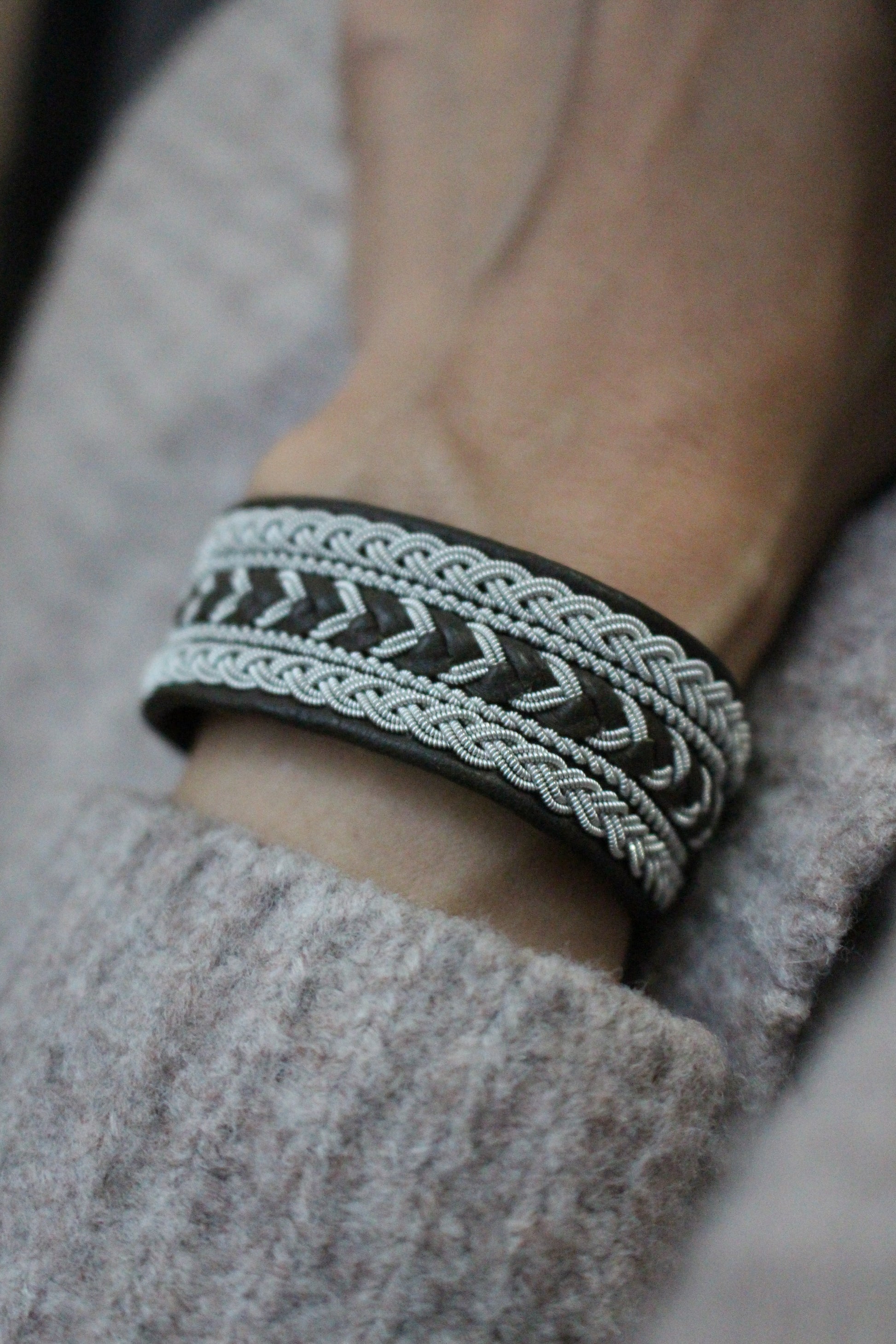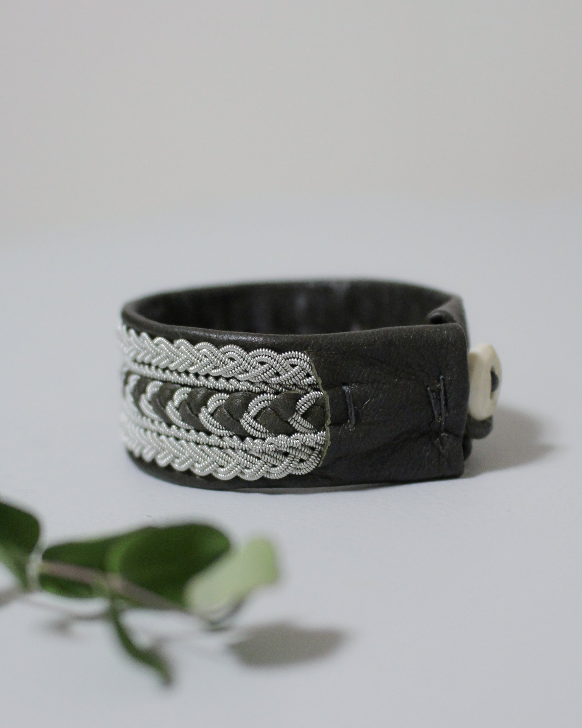 素材:トナカイ革、トナカイ角、ピューターワイヤー(錫糸)