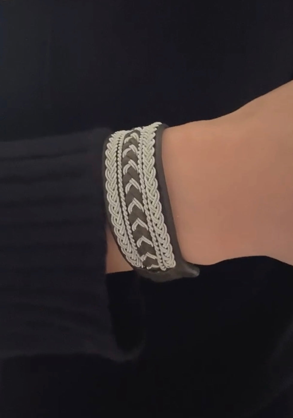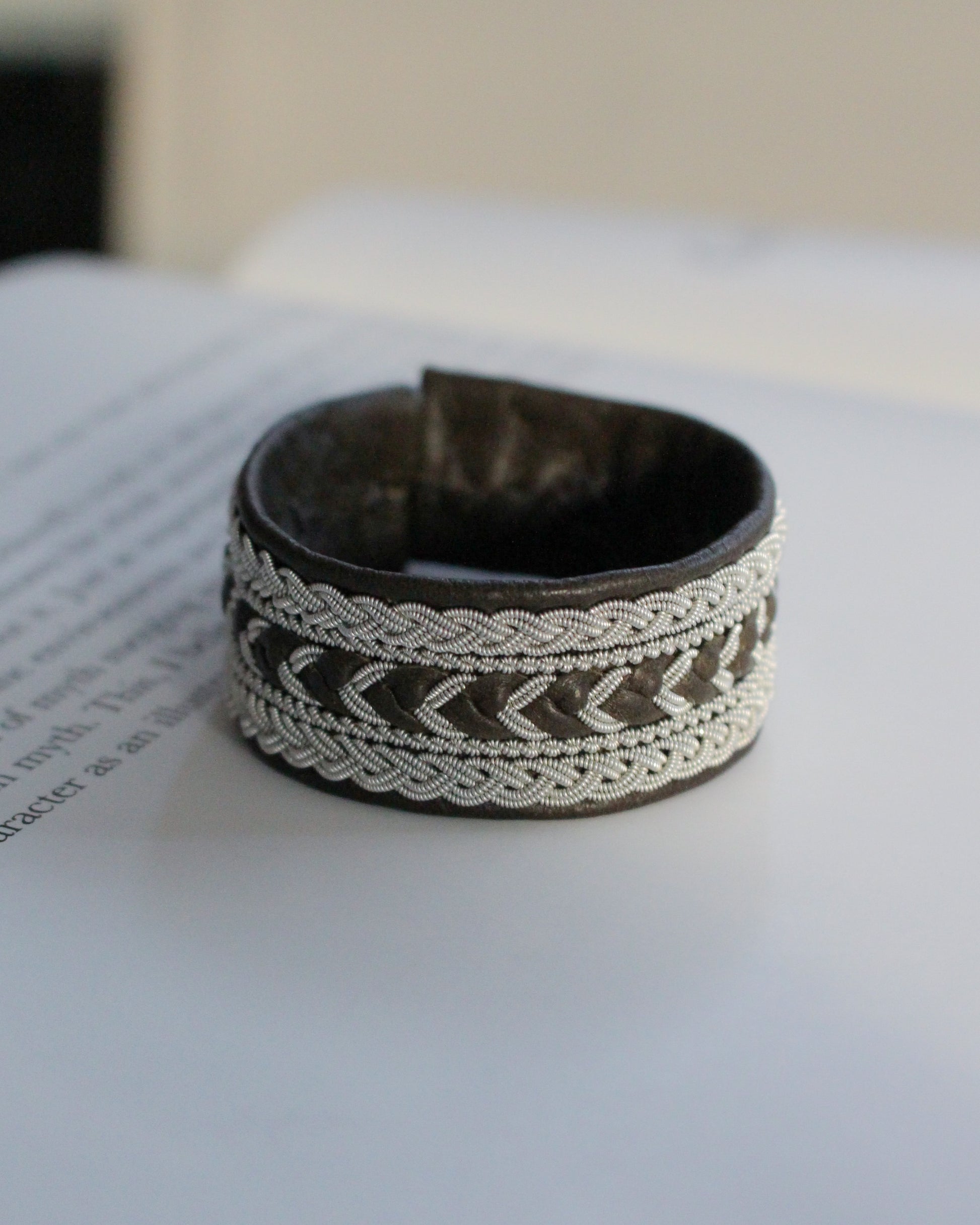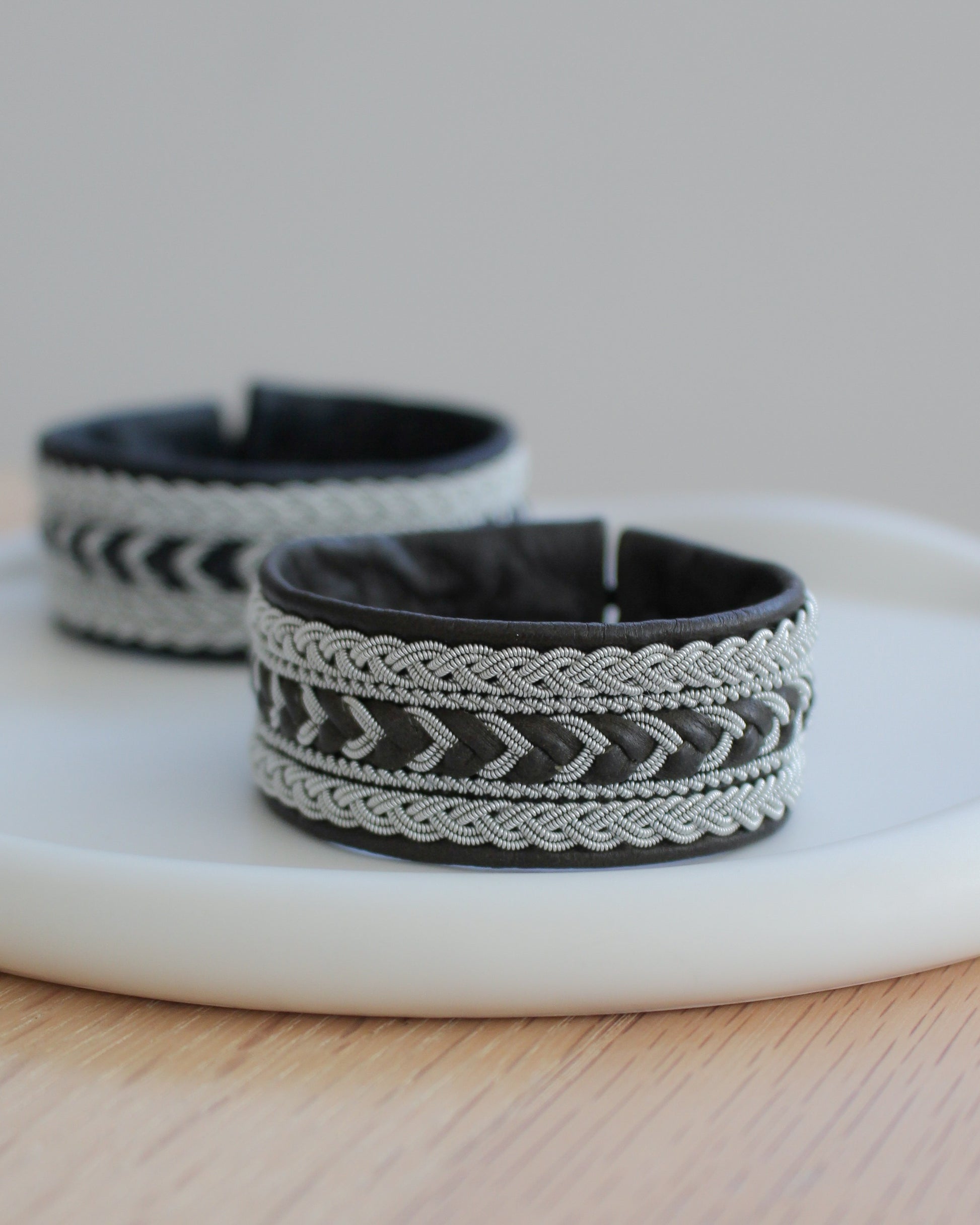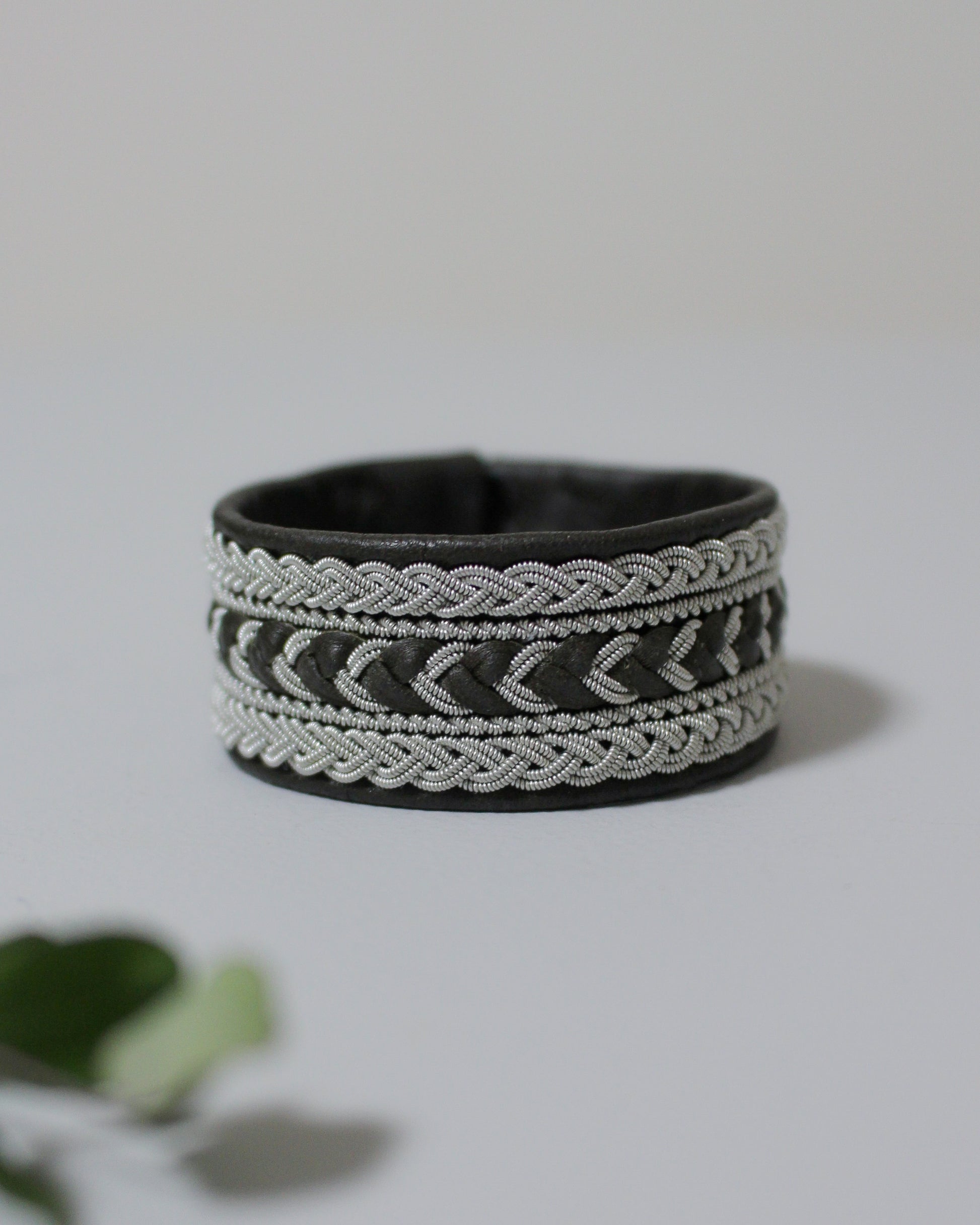 素材:トナカイ革、トナカイ角、ピューターワイヤー(錫糸)